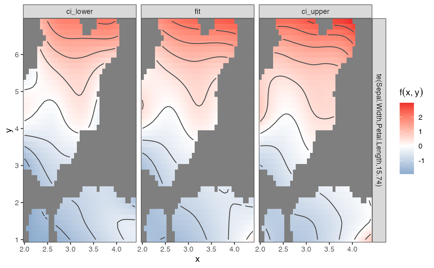 #> Warning: Removed 647 rows containing non-finite values (stat_contour).gg_tensor(g, ci=TRUE)#> Warning: Removed 1941 rows containing non-finite values (stat_contour).#> Warning: Removed 1624 rows containing non-finite values (stat_contour).#> Warning: Raster pixels are placed at uneven horizontal intervals and will be shifted. Consider using geom_tile() instead.